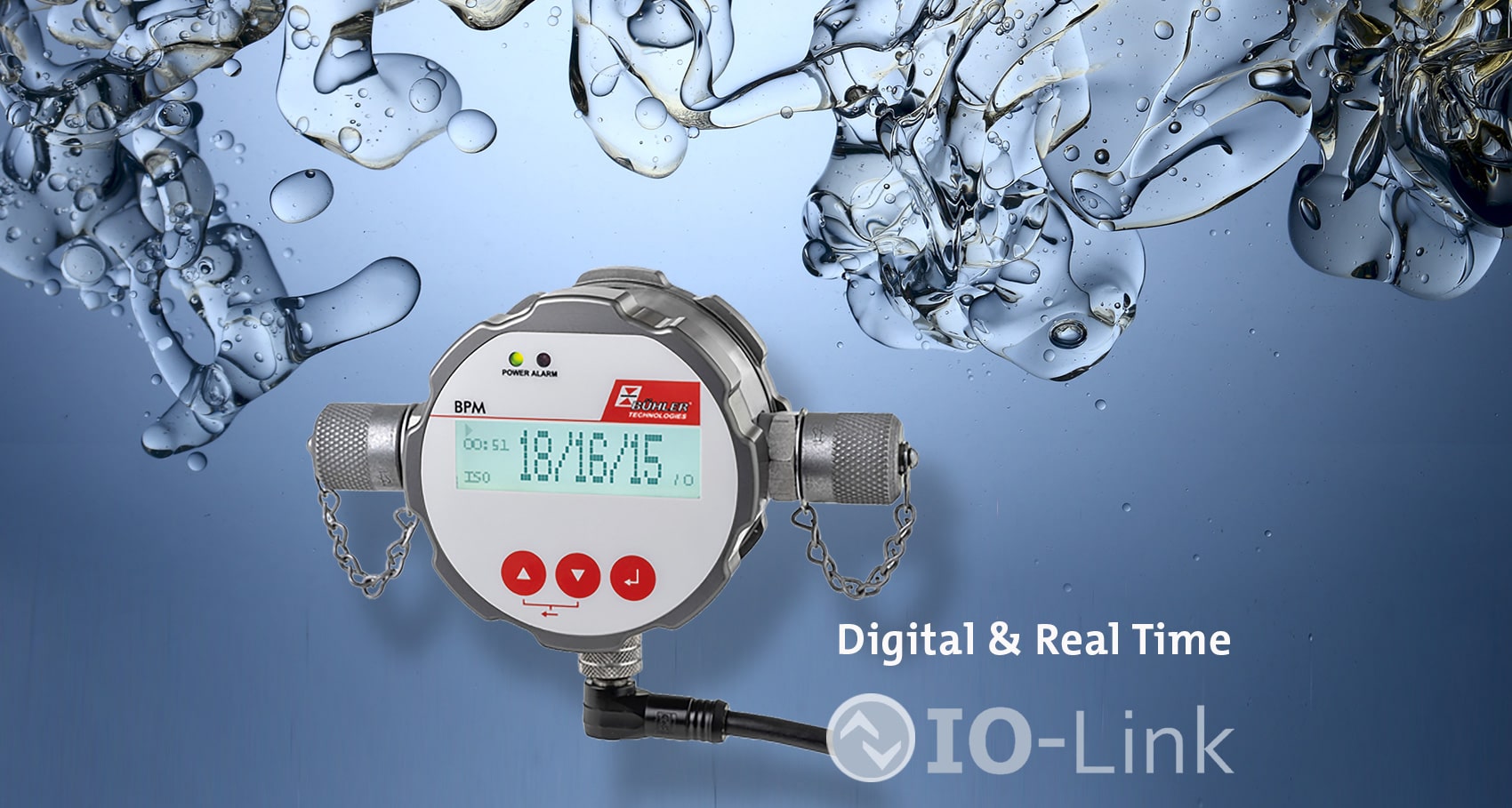 Besonders für die on-line Überwachung sind die BPM Geräte mit einer IO-Link Schnittstelle geeignet. Über dieses, inzwischen in der Automatisierung in der Fluidtechnik vielfach genutzte digitale Kommunikationsprotokoll nach IEC 61131-9, stehen Sensoren und Aktoren mit einem Automatisierungssystem im Datenaustausch.